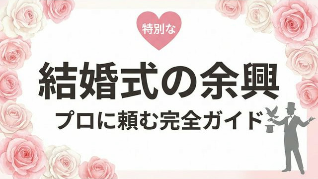 この記事では、結婚式に呼べる「プロ」の種類を分かりやすく整理して、依頼するメリット&デメリット、人気の余興ジャンル、失敗しない選び方まで紹介しています。