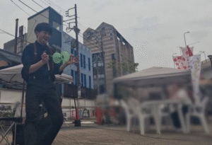 「子供から大人までまったり楽しめるパフォーマンスをお願いします」と、担当者様よりお問い合わせいただいたので、地元土浦市在住の若手ジャグリングパフォーマーTakeさんの大道芸パフォーマンスをご提案させていただきました。