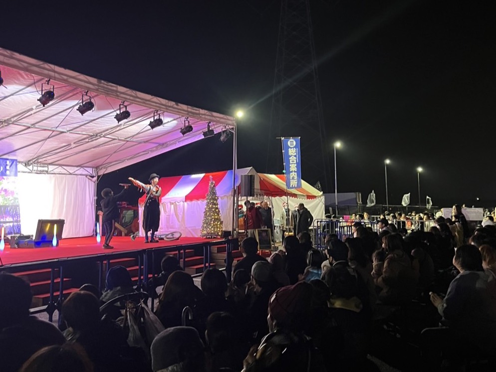 かわちクリスマスイルミネーション2025での、イルミネーション点灯式直前を飾るステージショーを担当させていただきました。