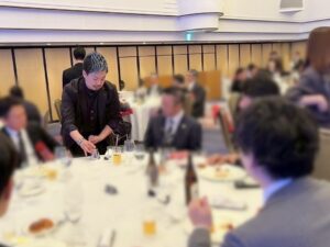 その後、マジシャン5名で各テーブルを回りテーブルマジック。僕は来賓のお客様の多い上座のテーブルを担当させてもらったので、丁寧なマジックで、尚且つネガティブは言葉を使わないようにマジックを演じ、テーブルの来賓の方同士が仲良くなれる会話のキッカケになるよう意識しました。